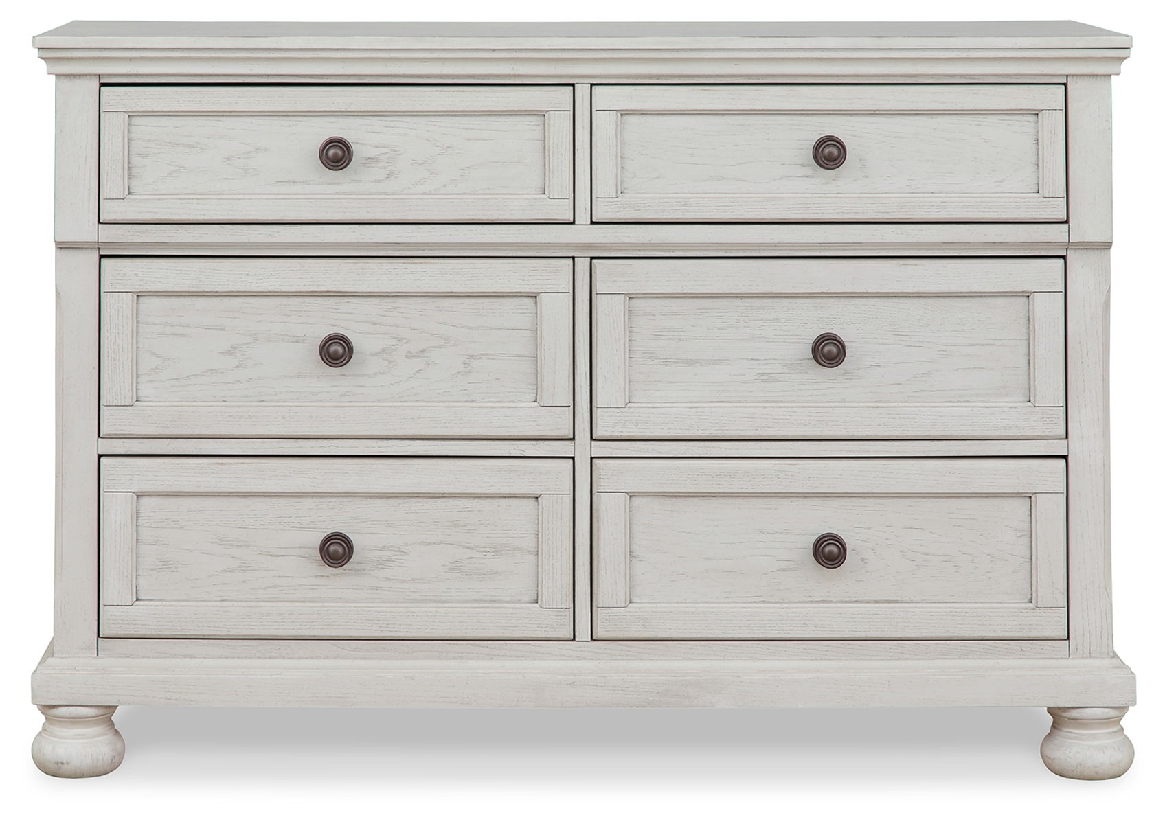 Elegant, timeless furnishings take your bedroom to the next level. Nothing does that better than this dresser. The antiqued finish with a wonderful grain texture radiates sophistication, while the dark bronze-tone hardware adds an ornate touch. A hidden pull-out tray behind the top middle drawer puts your small valuables out of sight. Felt-finished top drawers round out the piece for the ultimate tasteful bedroom.