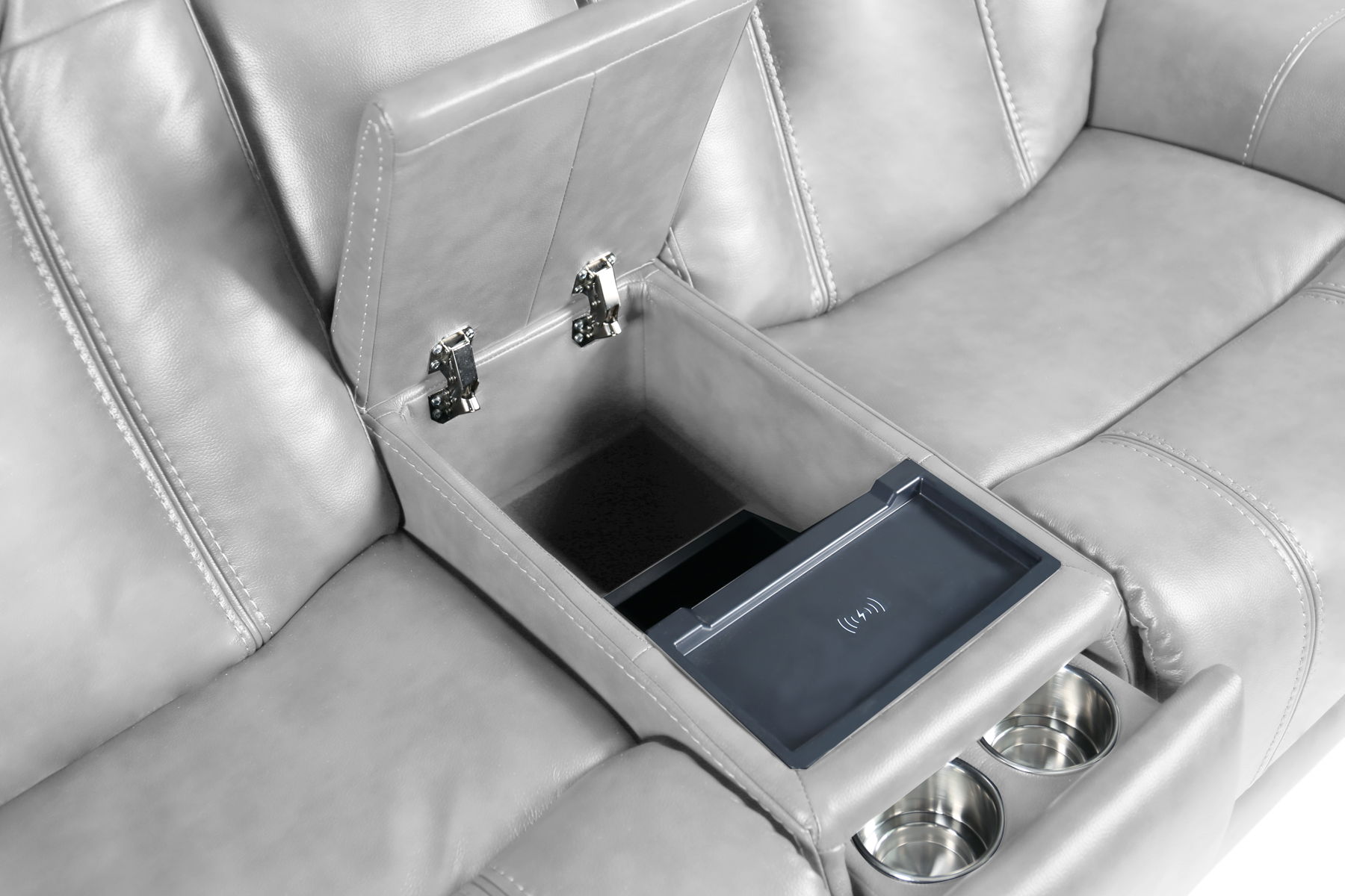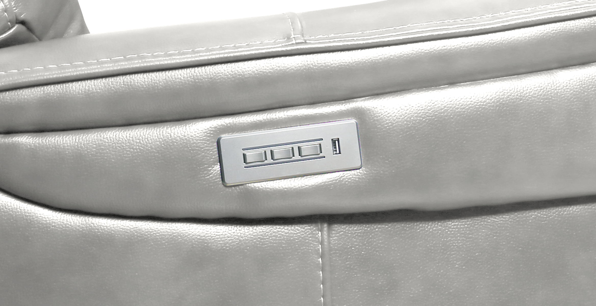 Larger scale Media sofa collection with power headrest, power lumbar, power recline, lay flat mechanisms and 3” footrest extension. Features include 41.7” high horseshoe back, hockey stick shaped plush arms, bucket pad over chaise seating, and thick decorative stitching. Available pieces: sofa, console loveseat and recliner.