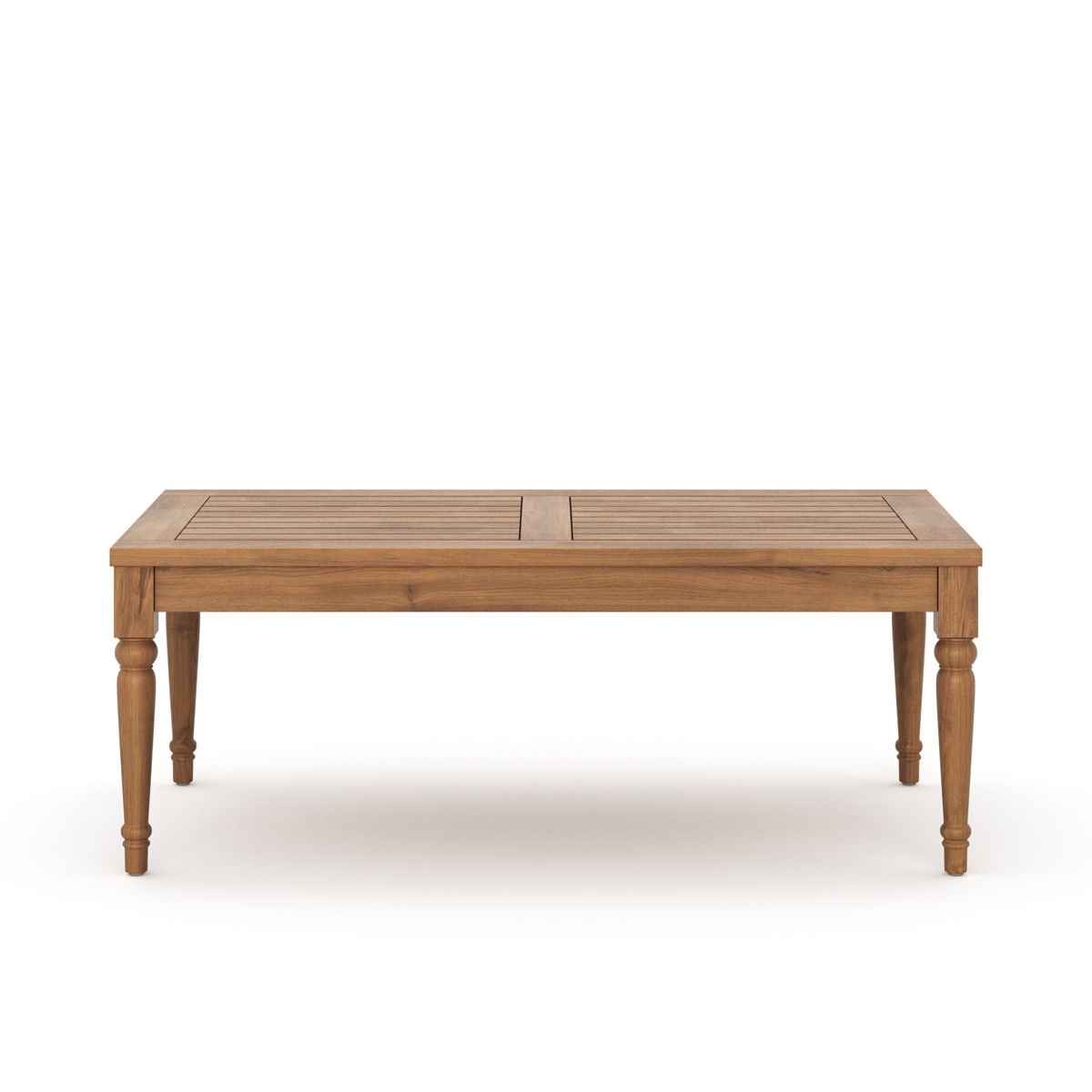 The Savannah Coffee Table adds timeless charm to your outdoor space. Made from FSC Certified Acacia solid wood, it’s naturally resistant to water, mold, and warping. A clear, light finish highlights the wood grain, while a UV-protective oil coating offers added durability. With its traditional turned legs and plank top, this coffee table blends Southern style with lasting strength. Easy assembly with included instructions makes setup quick and hassle-free.