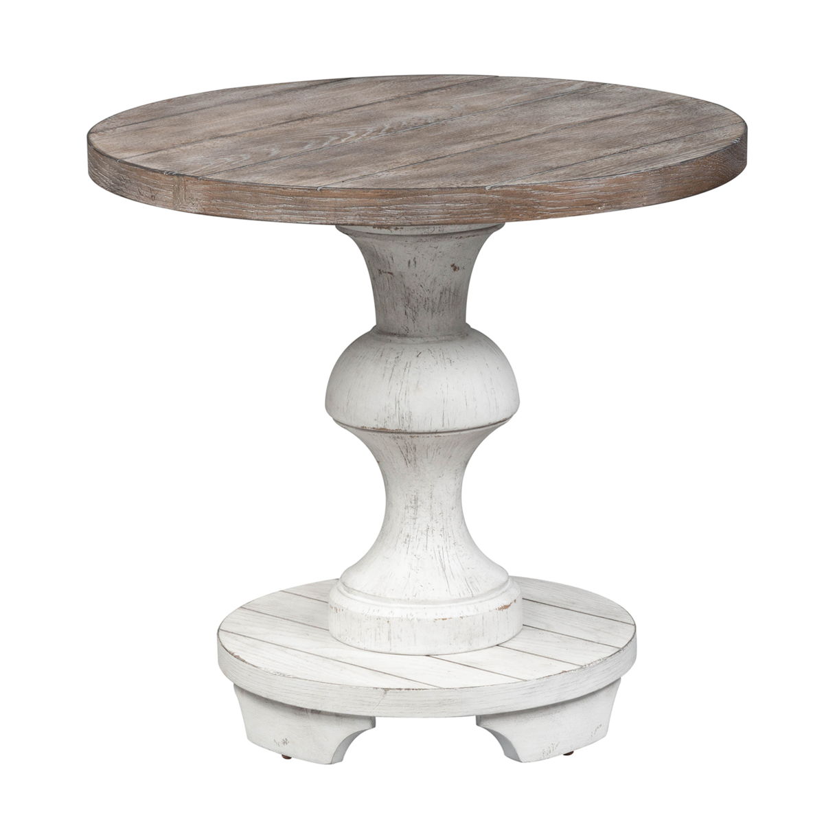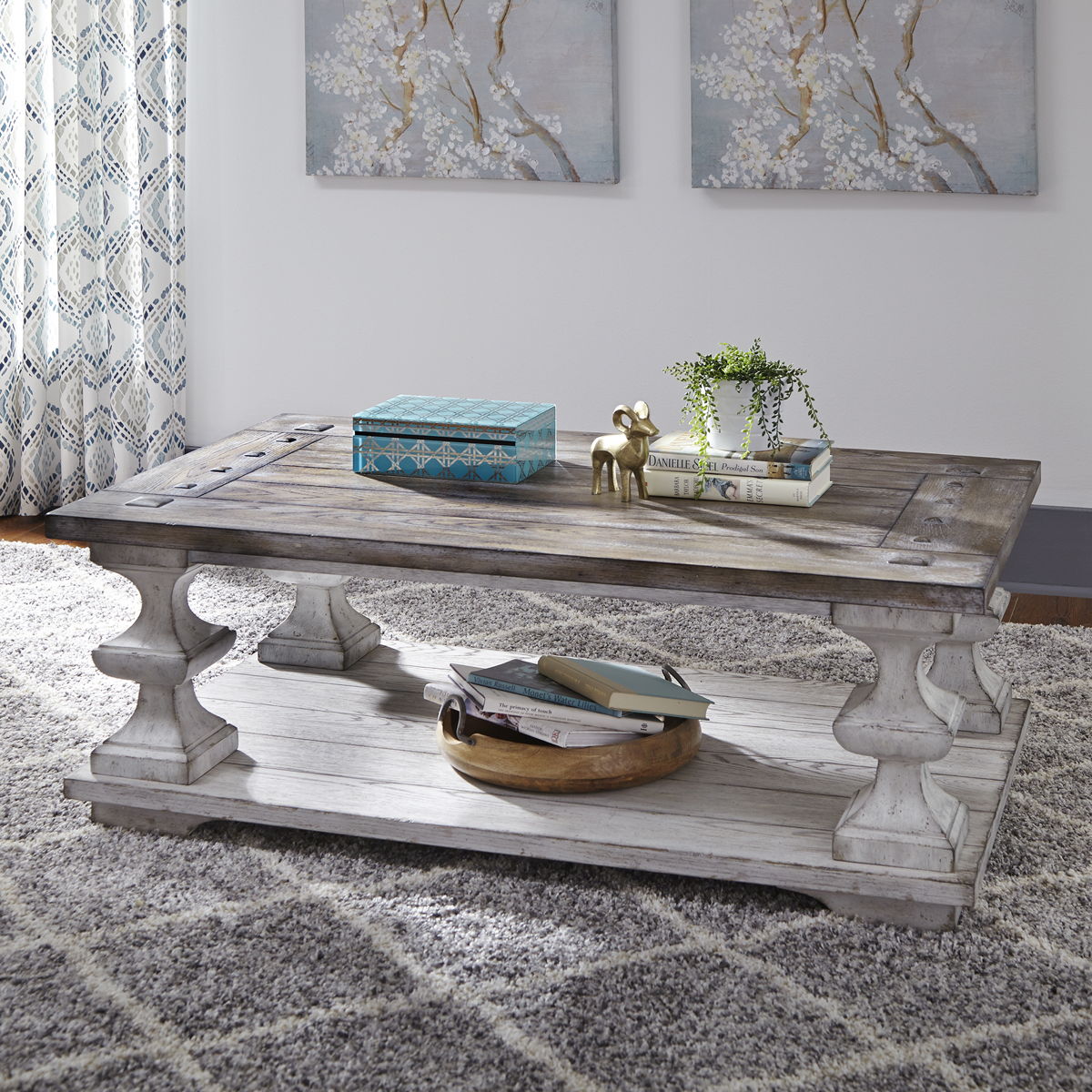 The Sedona features Spanish style turned legs with a heavy planked top and square peg accents. Bottom shelves for storage and display are featured for each table. This collection is perfect for leather upholstery.