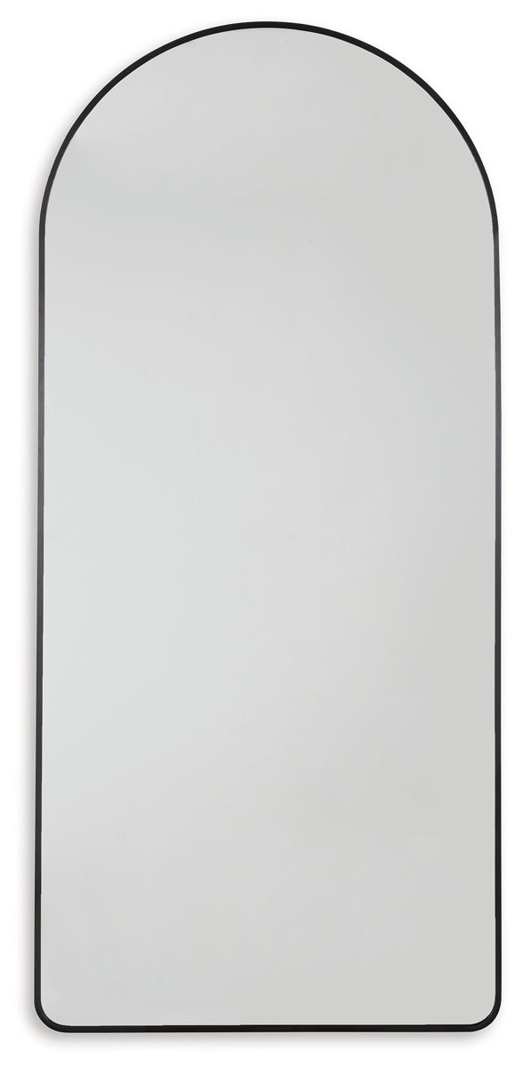 Beauty reflects in contemporary style with this floor mirror. Its black-finished metal creates a lovely curved frame. Standing almost six feet high, this mirror makes a case for statement style.