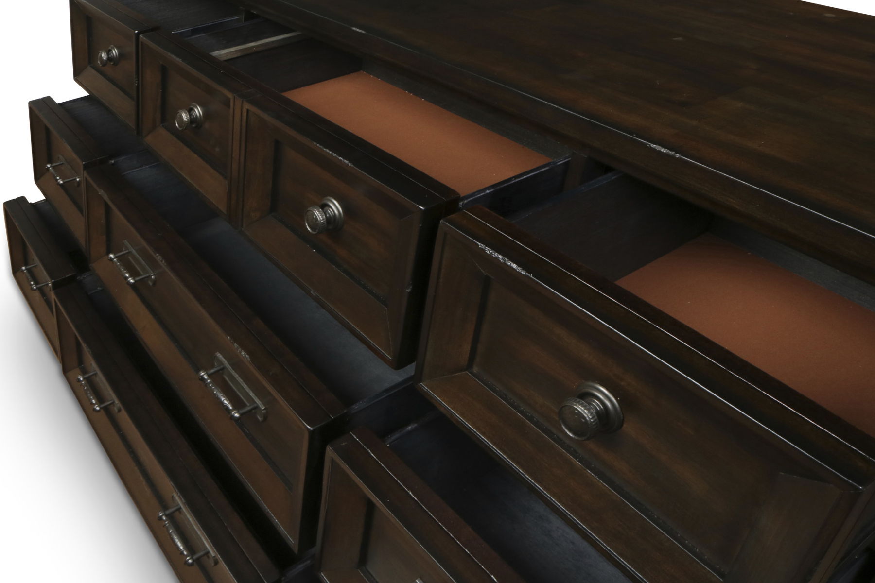 - Artisanal Multi-Step Finish: Each piece is meticulously coated in rich walnut and skillfully hand-distressed through rasping, clefting, indentations, and threading, creating an authentic, time-worn vintage appearance.