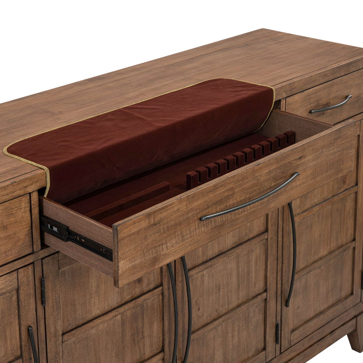 - Includes a Removable Felt Lined Silverware Tray