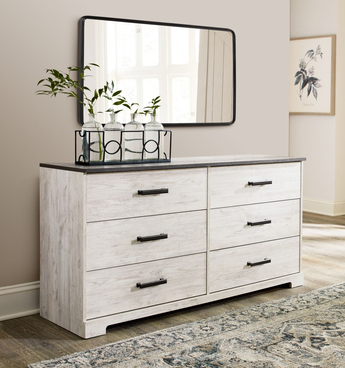 Give provincial a new meaning with the chic look of this dresser. A two-tone finish keeps this piece light and fresh, while the warm pewter-tone hardware adds an industrial touch. The dresser’s distressed whitewashed body adds a delightfully homespun charm to your space.