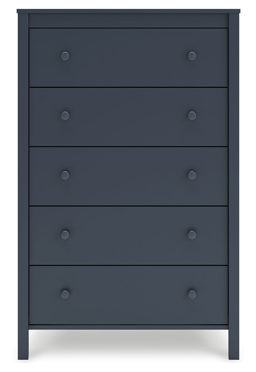 Immerse yourself in this chest of drawers, where Shaker-style design meets a stunning navy blue finish. The crisp lines effortlessly complement farmhouse, coastal and transitional decor. Sleek in its simplicity, the chest suits your desire for a fresh bedroom style with essential function.