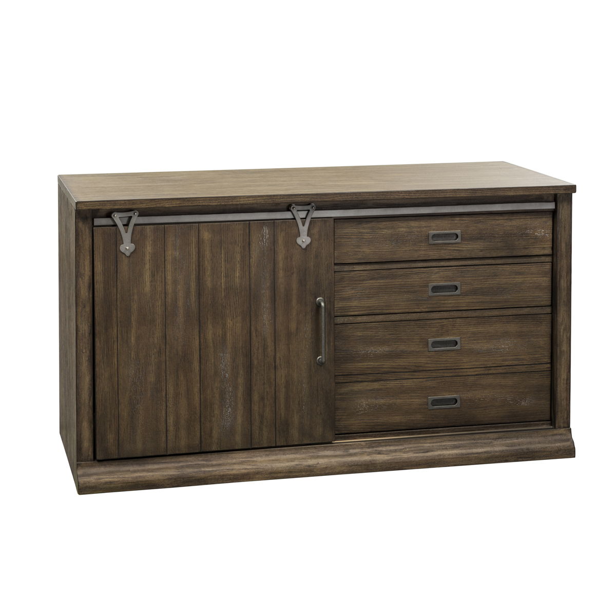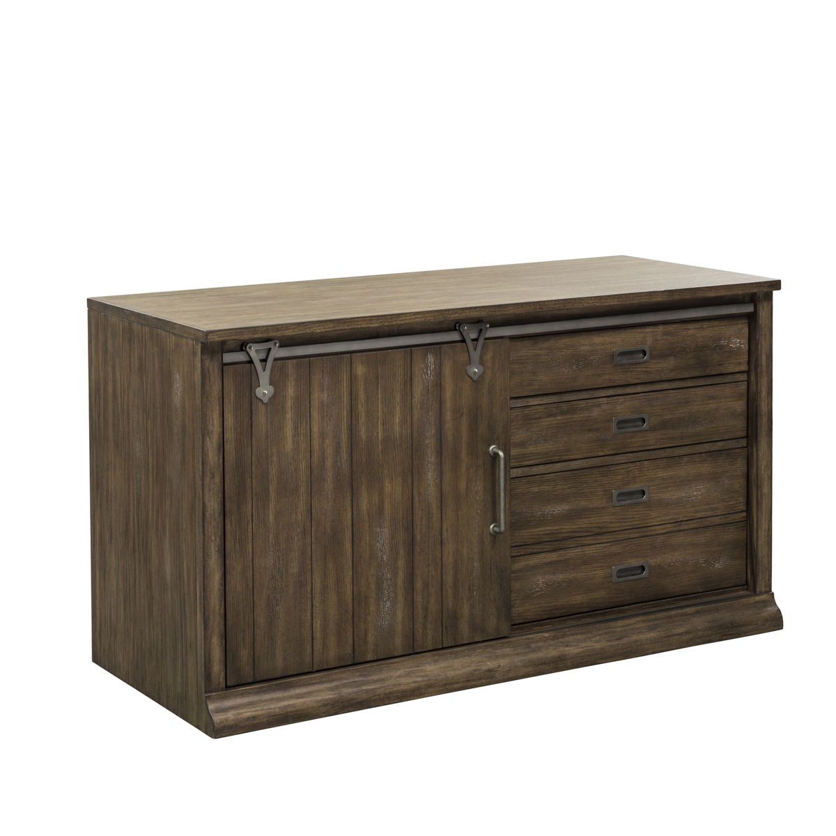 Create a look all your own with Stone Brook Home Office. Mixed materials of the concrete with the saddle finish give Stone Brook a modern rustic feel. A unique desk and credenza/Hutch combination can satisfy your work habits as well as reflect your style