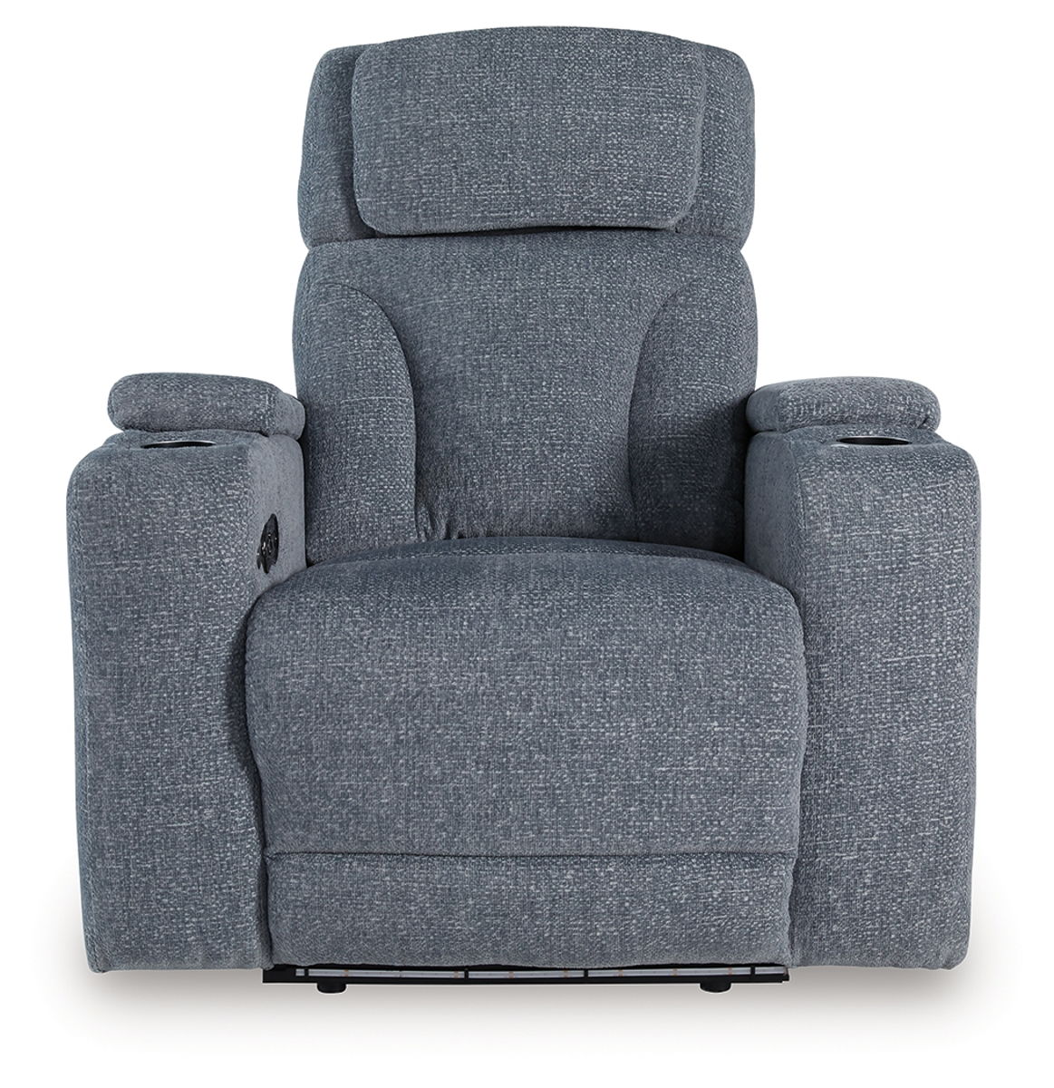 Chill-out time has never looked better. This power recliner’s adjustable headrest ensures a perfect view of the TV no matter how far back you recline, while the extended ottoman takes your comfort to the next level. Handy charging features and storage cutouts put phones and e-readers at your fingertips. Plush yet practical Next-Gen Nuvella™ performance fabric and ambient lighting complete the theater-style experience. It’s time to relax, nap or binge-watch in the best seat in the house.