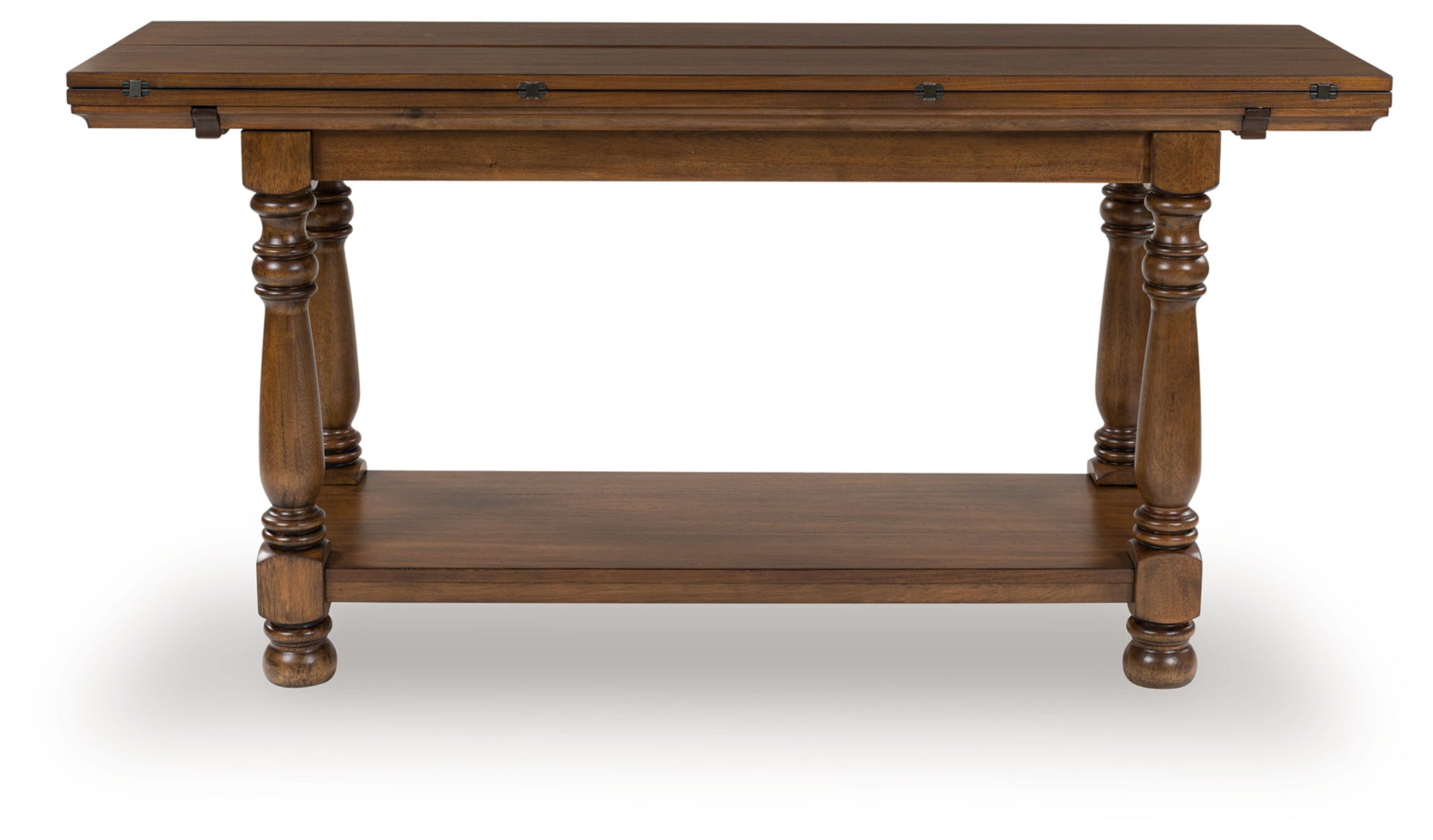 Traditional style doesn’t have to be stuffy. It can feel warm, inviting and beautifully in the moment. Case in point: this flip-top sofa table. Showcasing uniquely detailed leg posts, it has an allure all its own. Equally special is the rich brown finish, which exudes a mood of timeless charm. And when you need an extra dining space, simply fold open the table’s hinged panels. How’s that for relaxed refinement?