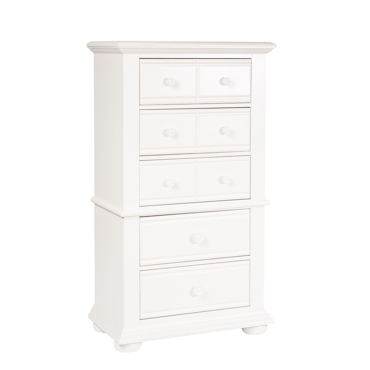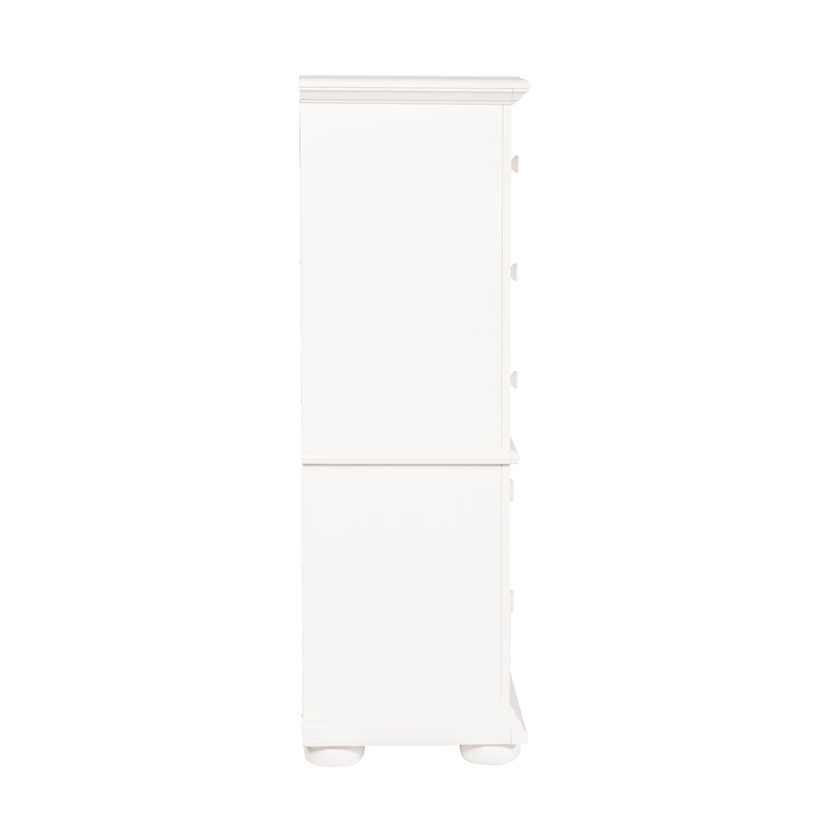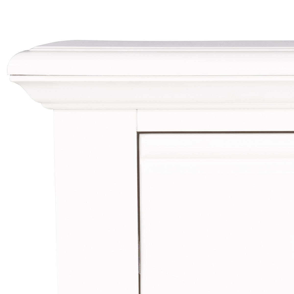 Cottage design is always in fashion. Summer house features the best of cottage with louvered panel accents in an Oyster White finish.