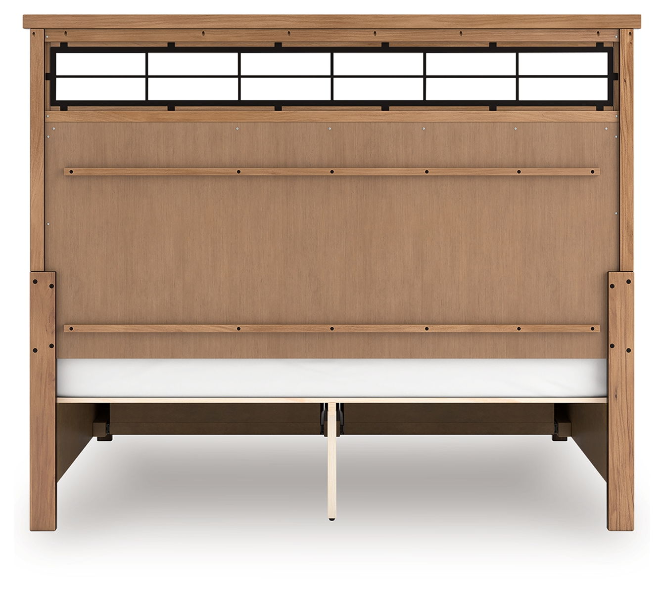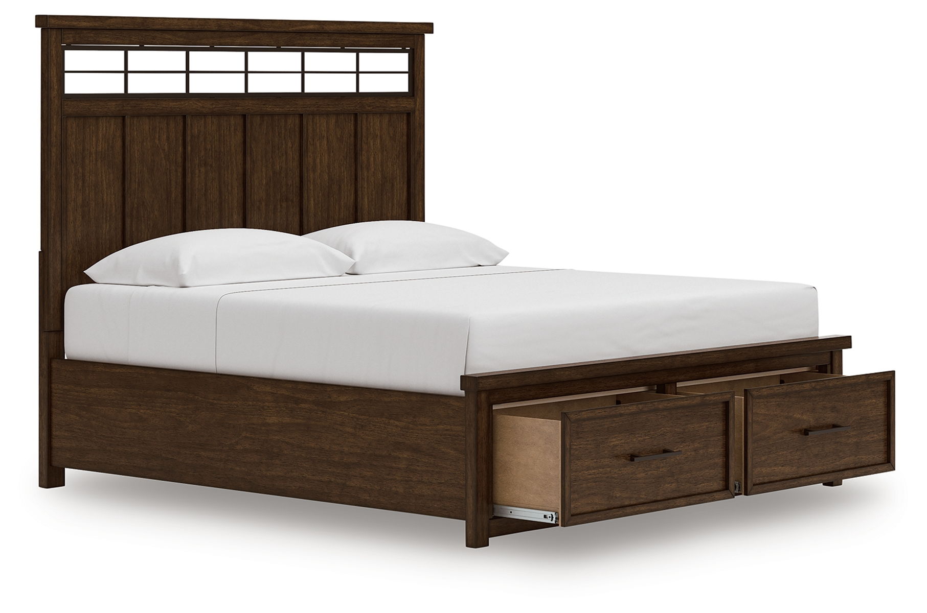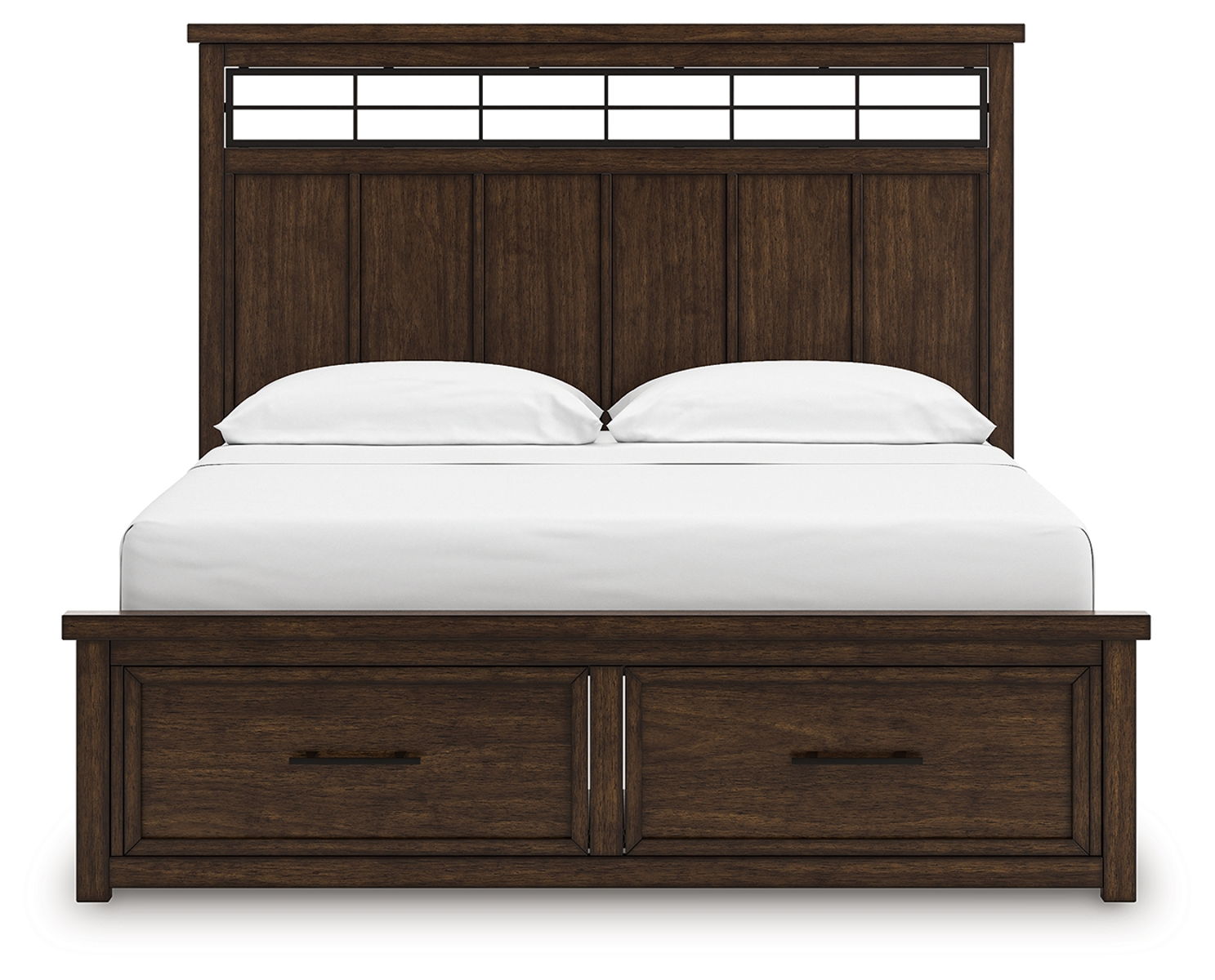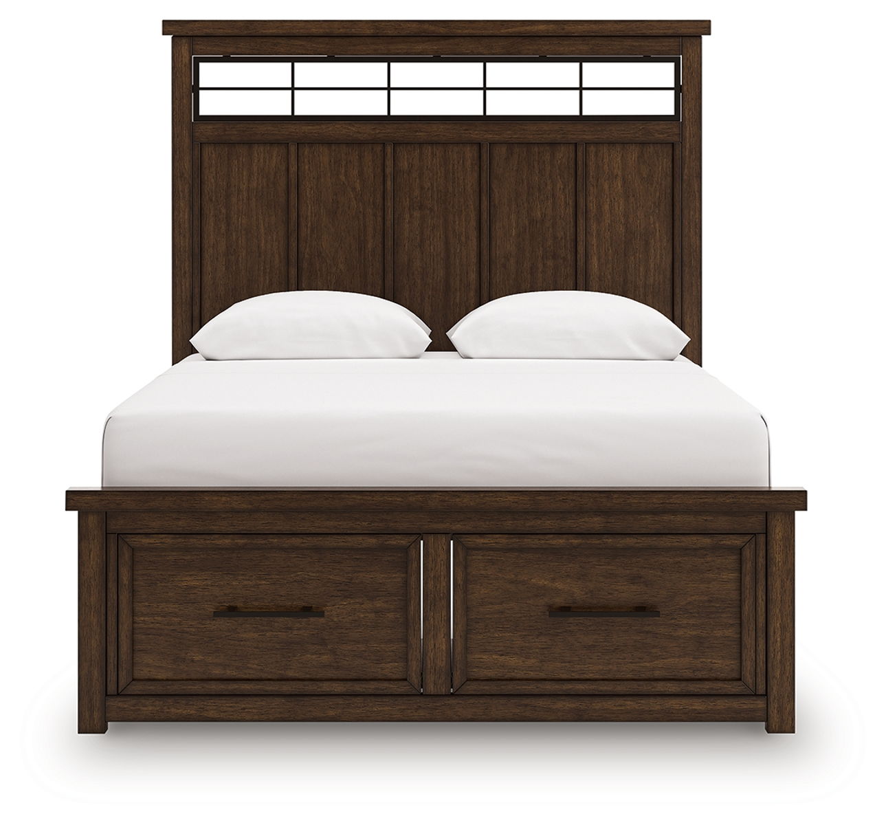 Style, simplicity and charm are hallmarks of this panel storage bed. Created with casual spaces in mind, it has the versatility to suit styles from craftsman to modern farmhouse. The rich finish aligns with your refined-meets-relaxed approach to everyday style. Short on storage space? Ultra-spacious under bed drawers keep extra clothes and linens neatly tucked away. And for a timeless touch, metal fretwork on the headboard brings an inviting mixed-material feel to the overall look.