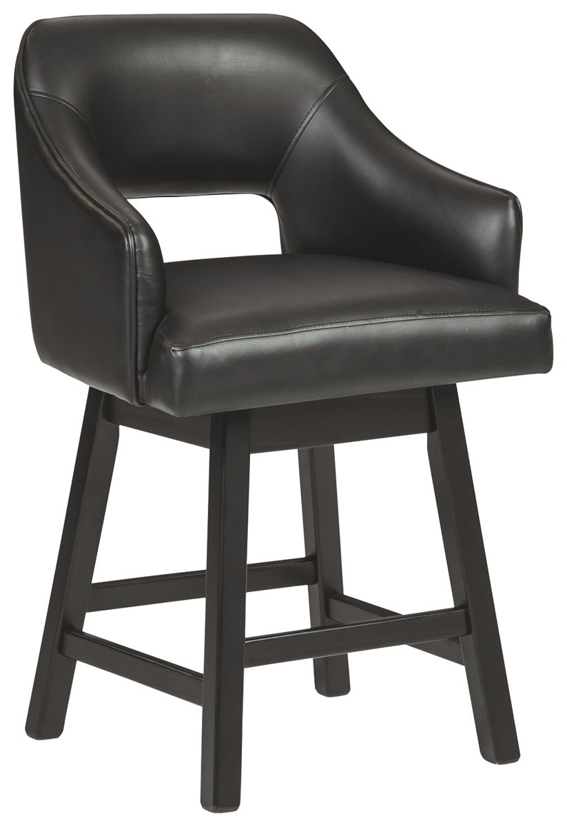 This striking barstool invites you to take contemporary modern style for a spin. Comfortably cushioned seat, self-returning swivel and contoured back make it beautifully in tune with your needs. Luxurious upholstery is a sensational touch.