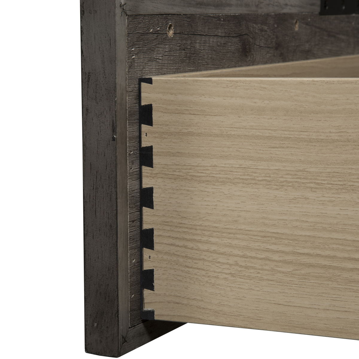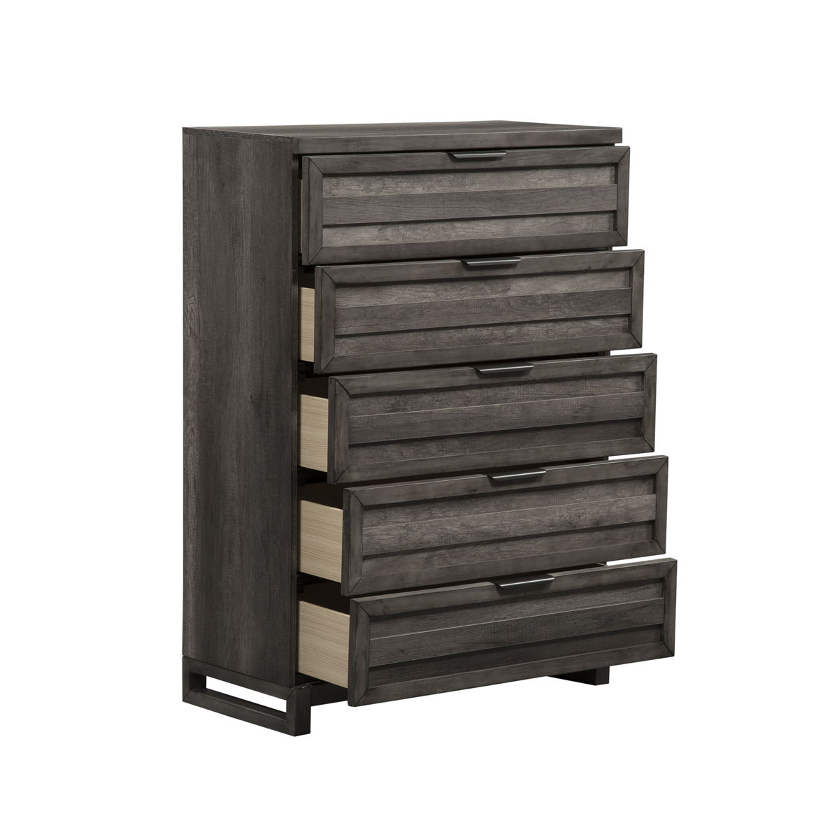 This urban Tanners Creek chest is the perfect way to enhance your room with a modern style. This piece is crafted with melamine and rubberwood solid framing, featuring bottom case dust proofing, solid wood picture frame drawer fronts, anchored by a solid wood sled base. The melamine is scratch resistant and is sure to last in any home. The dark antique brass center finger pull hardware effortlessly adds dimension, making it stand out in any space.
