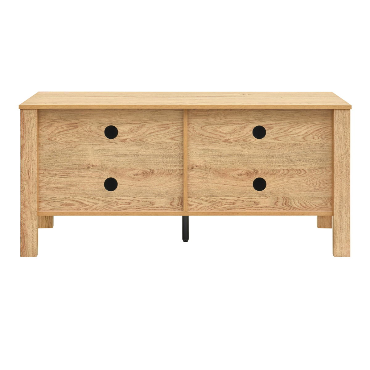 The Thayer 47″ TV Console offers stylish storage with a modern organic touch. Crafted from eco-friendly wood in a natural oak finish, it features clean lines, vertical reeded detailing, and rich woodgrain texture. Behind two doors, adjustable shelving and rear cable cutouts provide organized space for electronics, media, and gaming gear—perfect for keeping your entertainment area tidy and streamlined.