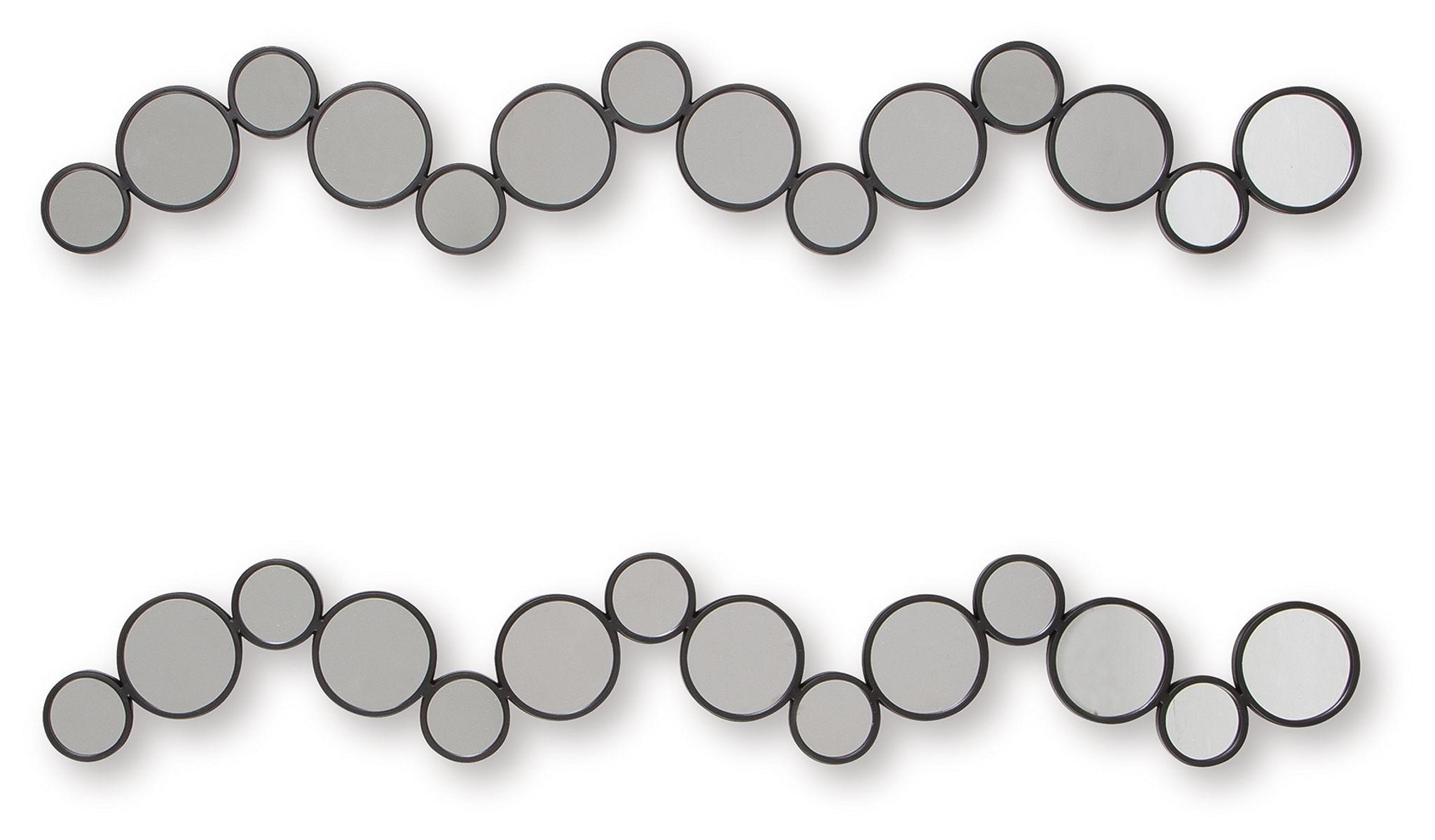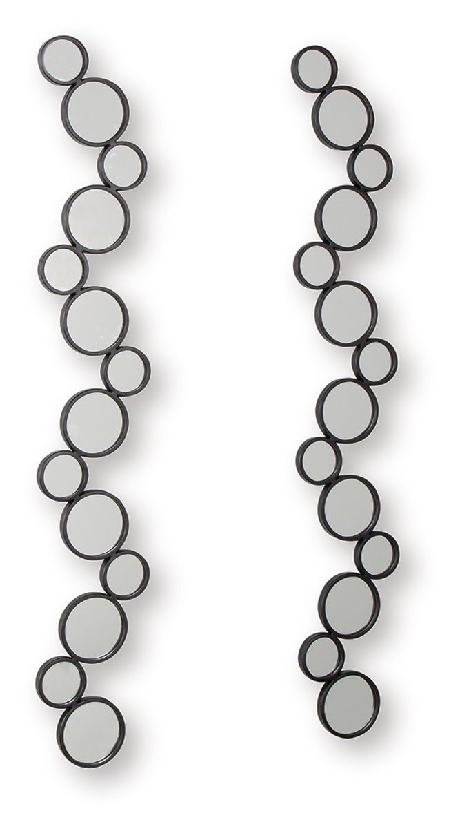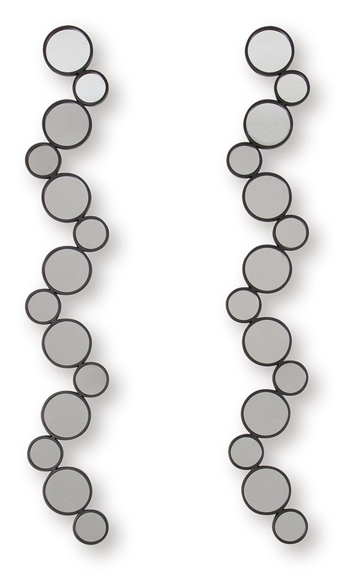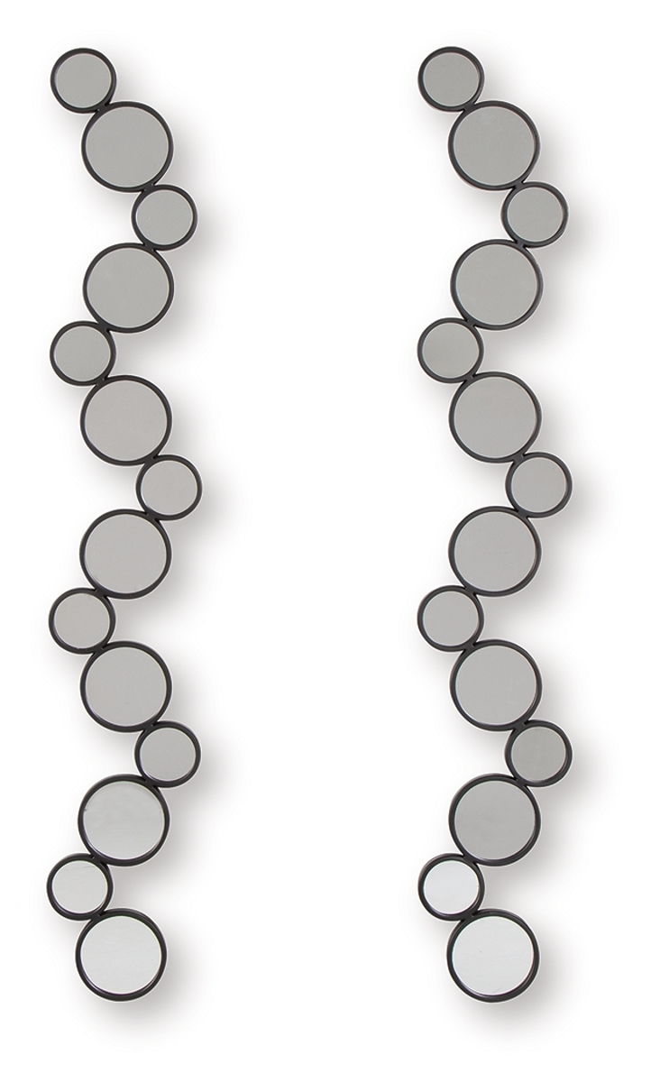 Time to refresh your walls? This accent mirror set is ready to introduce some modern whimsy. A playful arrangement of circular mirrors creates a unique and eye-catching design, while the black frames add a sleek, sophisticated touch. You can hang them four ways—yes, four—to create a custom look that complements your fabulous style.