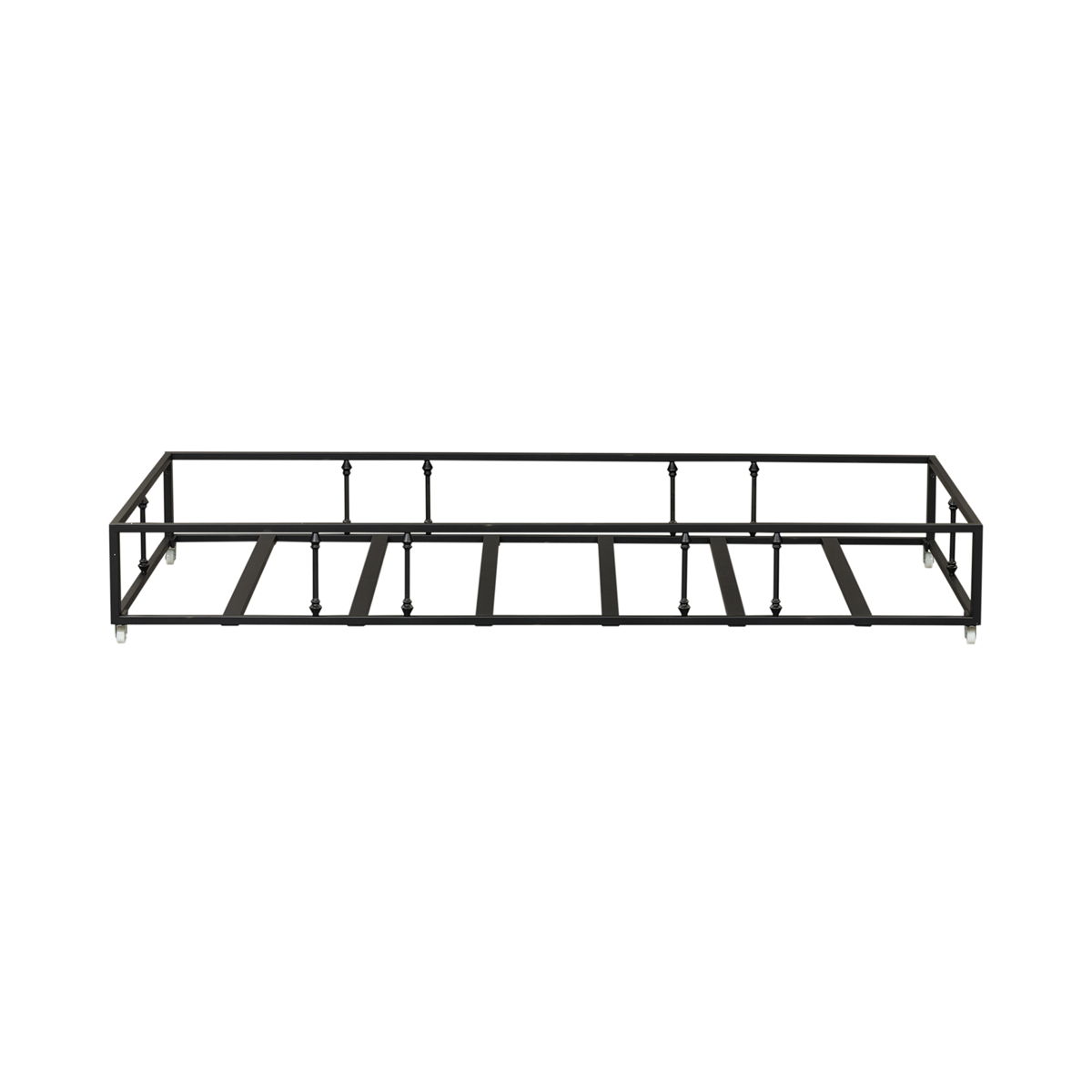 Add an extra bed without taking up any additional room with the Vintage Series trundle. Crafted of metal tube and finished in a beautiful antique white with wear thru. The trundle features turned spindles for decorative appeal and easily stores underneath the Metal Day bed when not in use. Features casters for ease of movement.