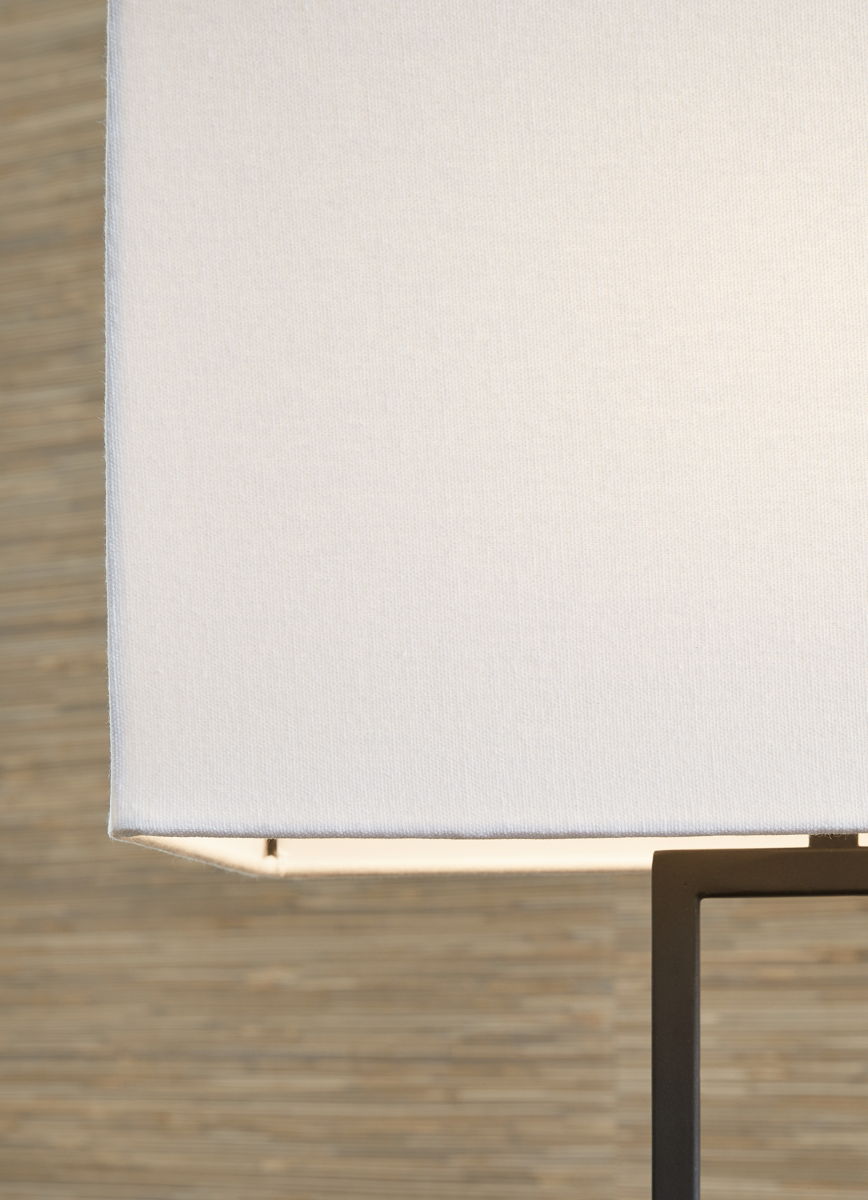 - Made of metal and wood with rectangle hardback fabric shade