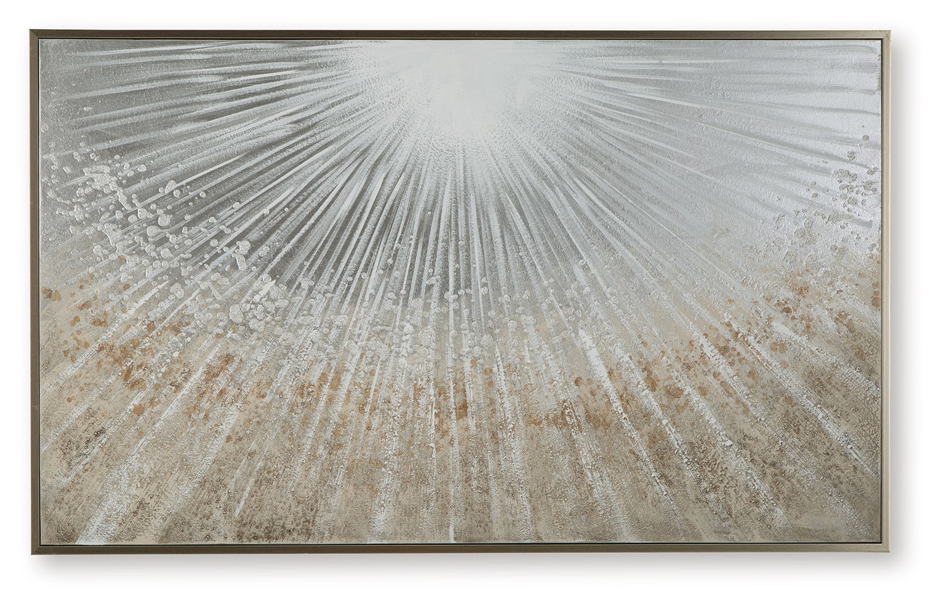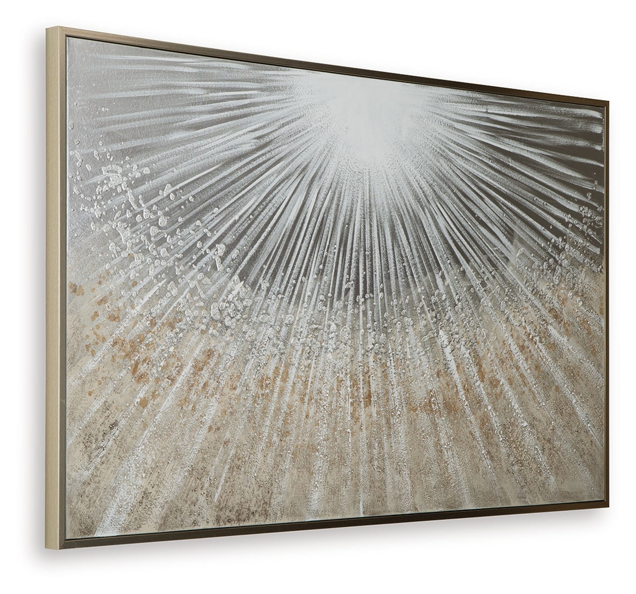 Brighten up your decor with this wall art. Its abstract design recalls the beauty of sunbeams peeking through the clouds, with gleaming metallic foil embellishments for added flair. A coordinating champagne-colored frame beautifully completes the piece.