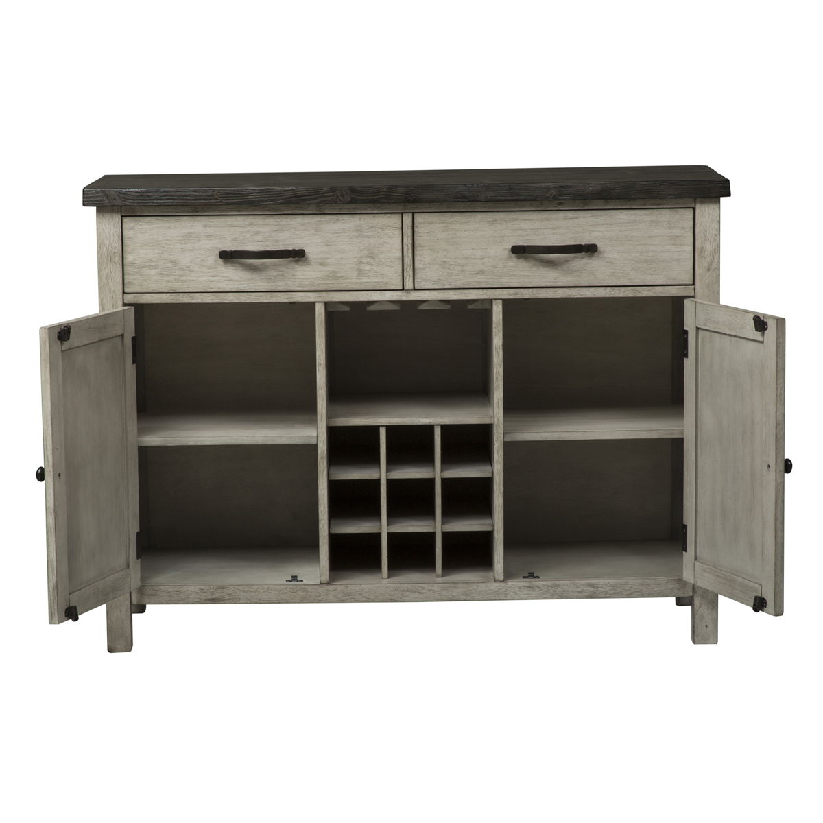 Vintage can refer to “a classic”, add in a relaxed style and you create a classic look with a casual feel. Looks that easily work in today’s homes. Style uncompromised with comfort abound. Willowrun features a beautiful charcoal and rustic white finish combination on a x base trestle table. Upholstered chairs add softness to the collection.