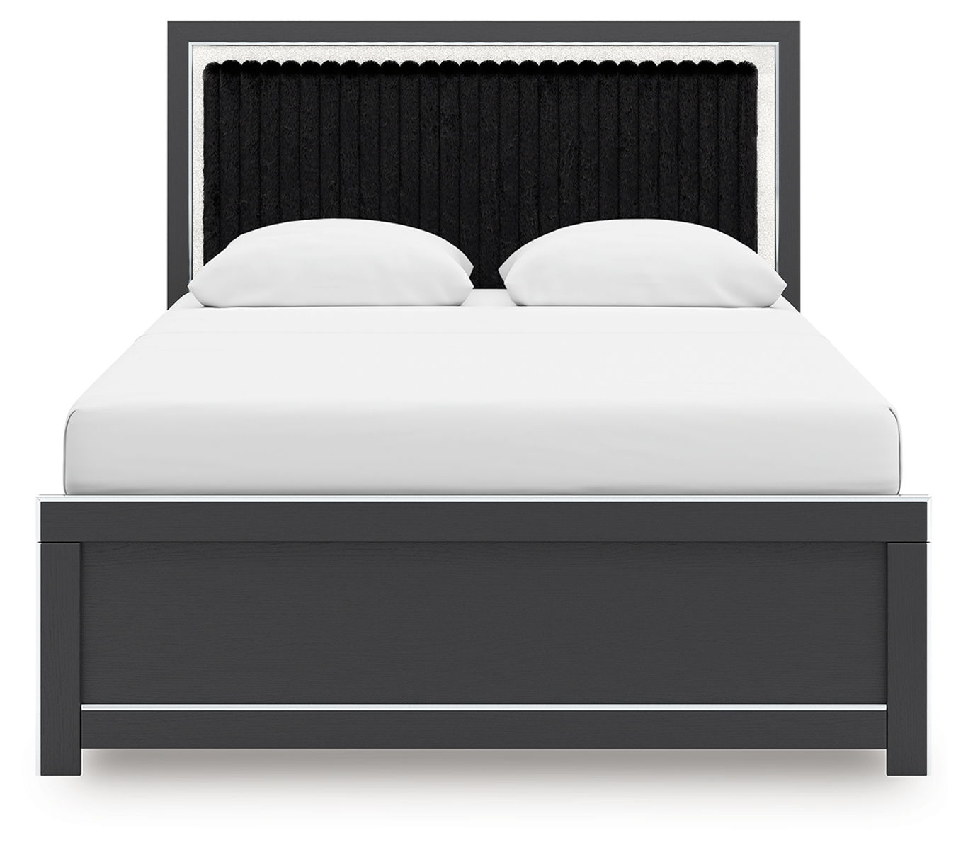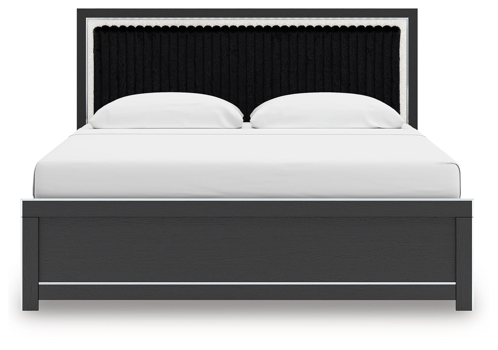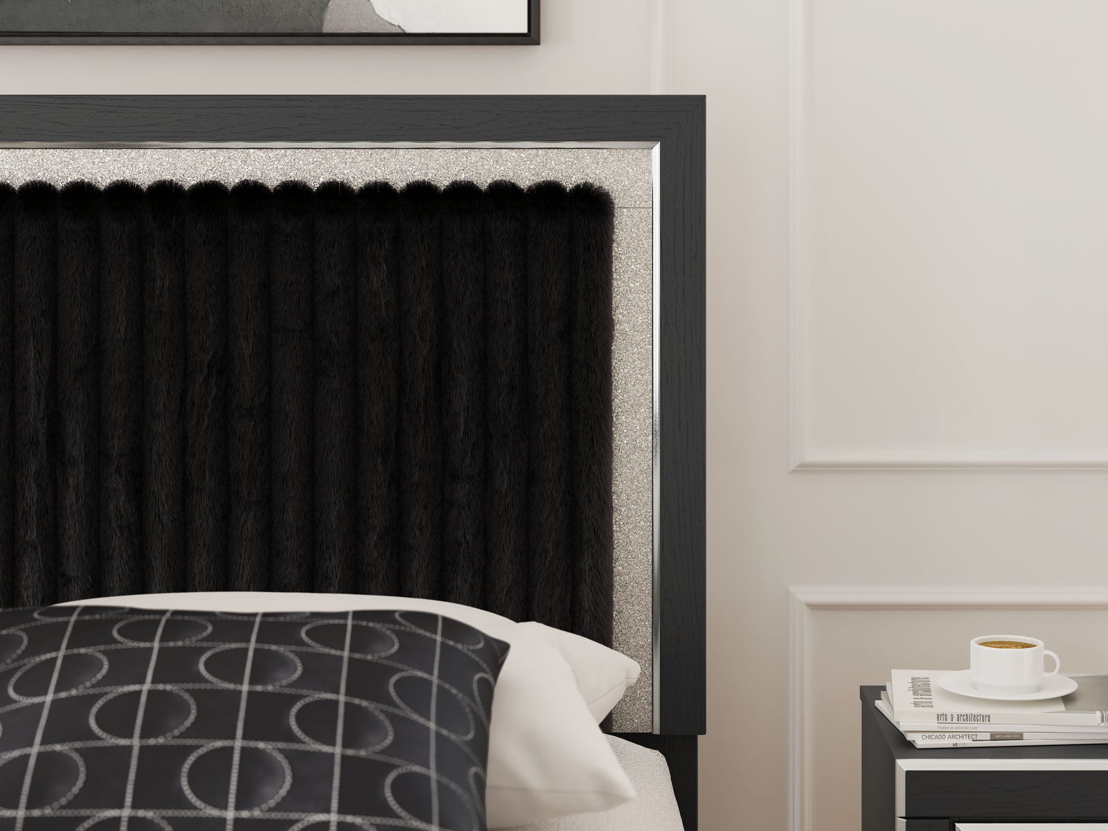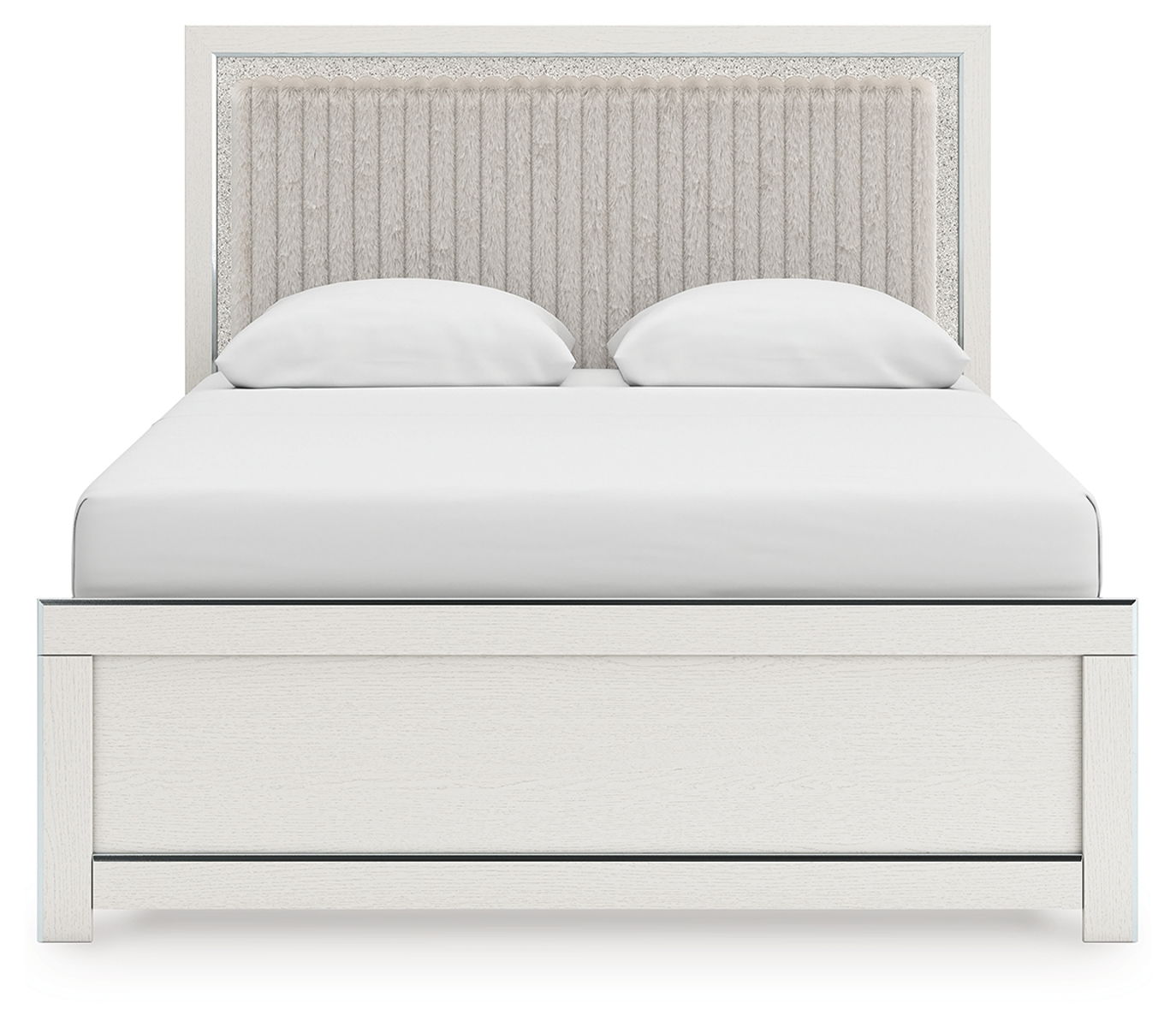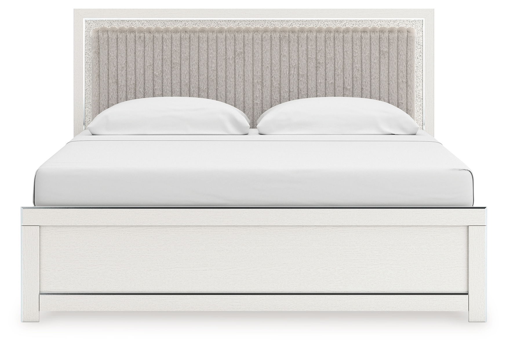If glitz and glam are your jam, you’re gonna love this queen upholstered panel bed. Gleaming glitter and dazzling chrome-tone touches are paired with tufted faux fur for a stunning pop of pizzazz. Loaded with chic flair and serious sparkle, it’s a simply splendid way to wake up your inner sanctum’s style.